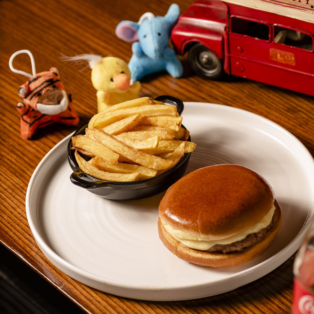 Baby Hamburger, French fries.