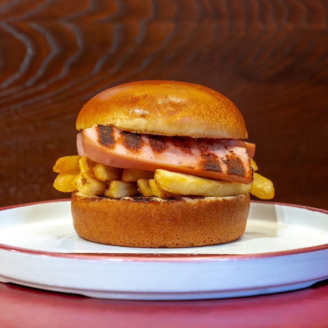 American bun, Baby hamburger, French fries.